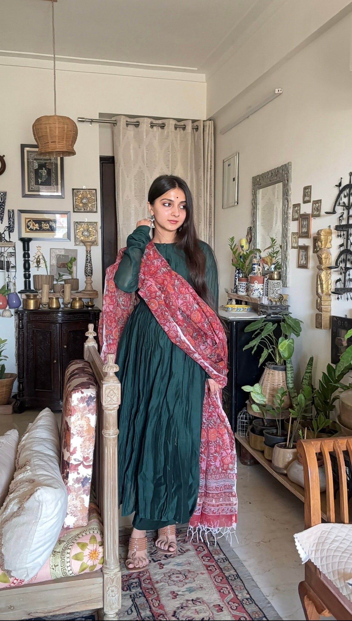 A three piece silhouette anarkali kameez with cigarette pants