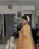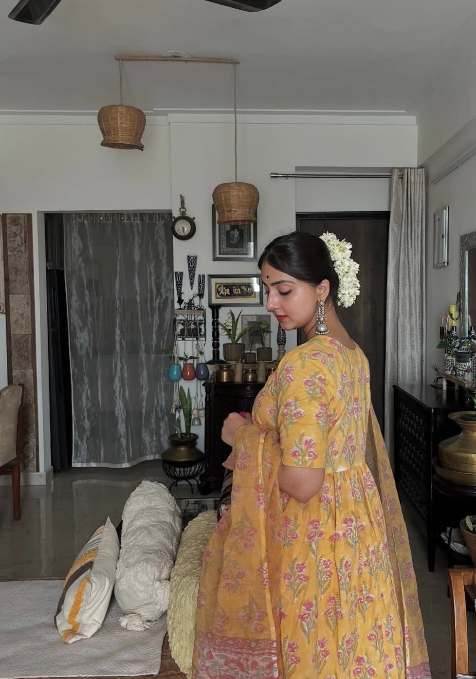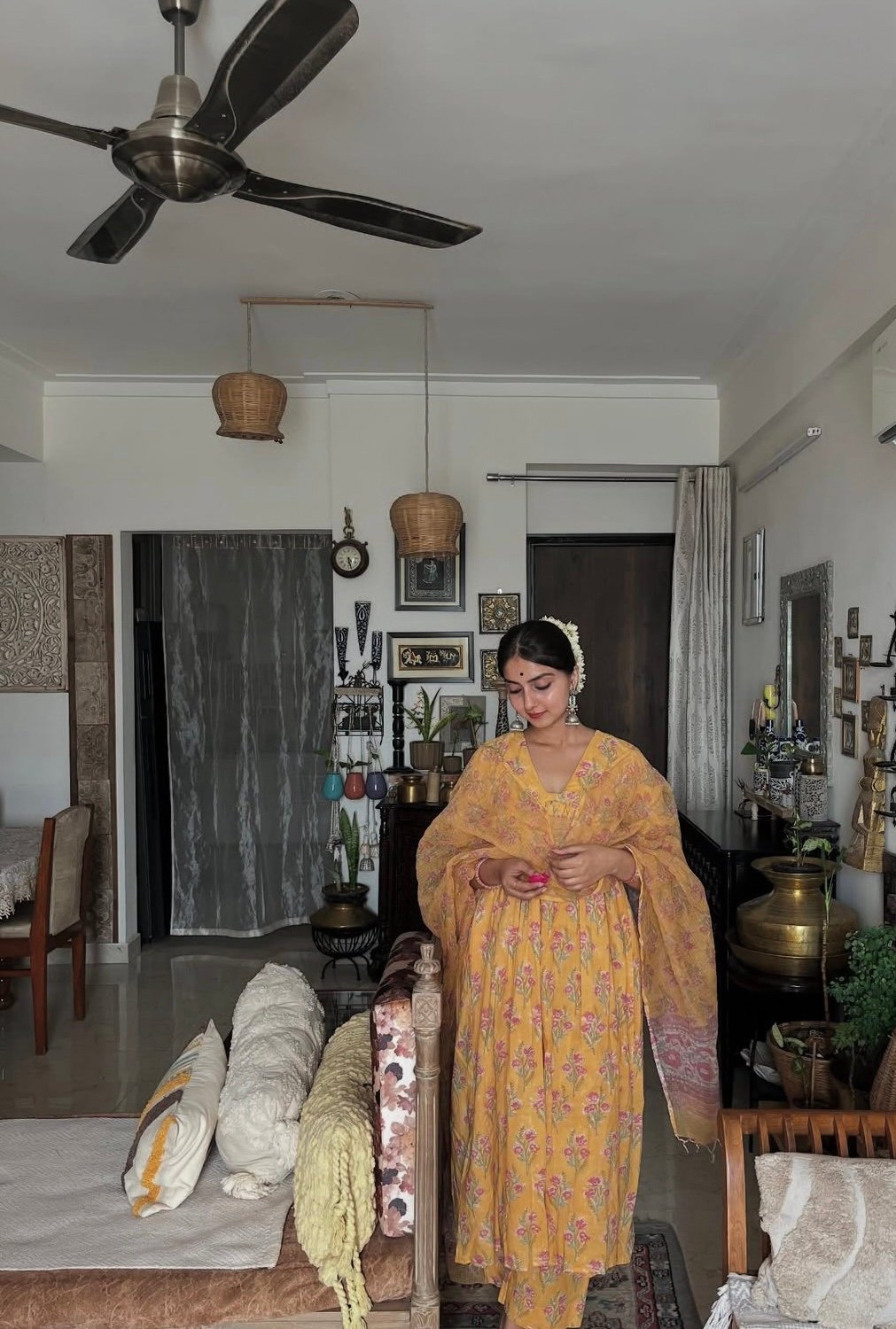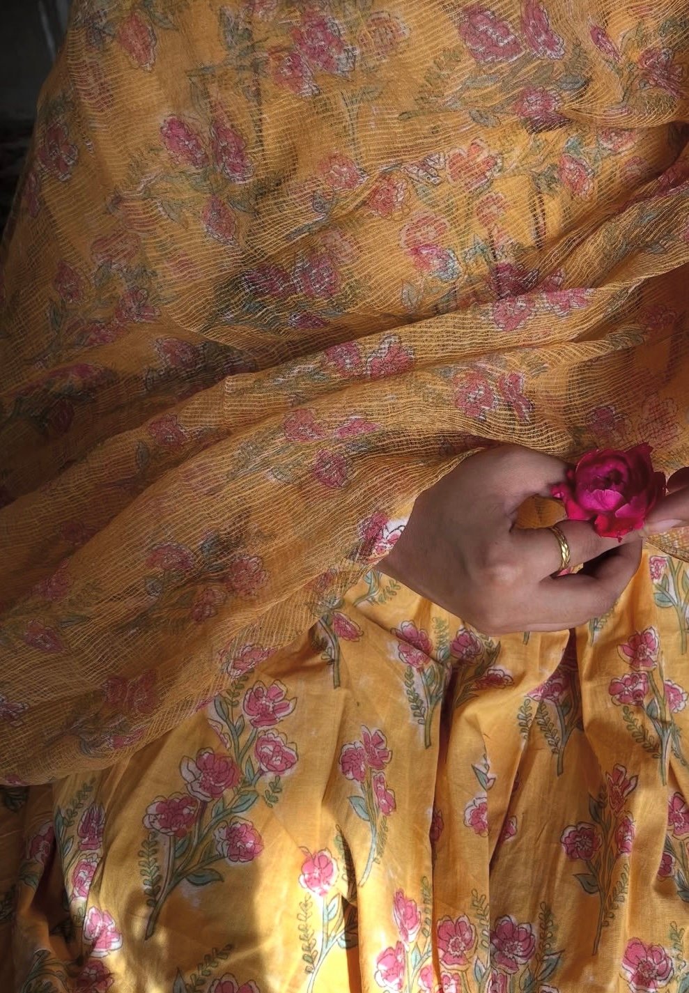 a daftar glass neck kameez with half sleeves with cotton printed cigarette pants and kota doria full length dupatta